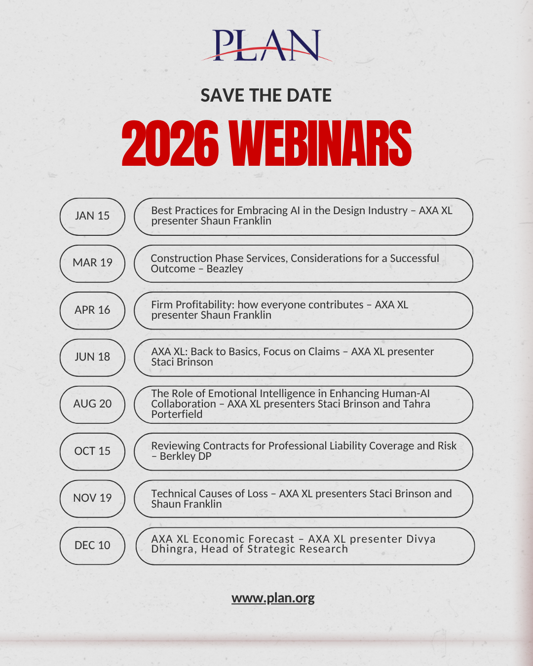 PLAN agents provide loss prevention and risk management strategies to architects, engineers and environmental consultants. Together with our clients, our goals are to:
